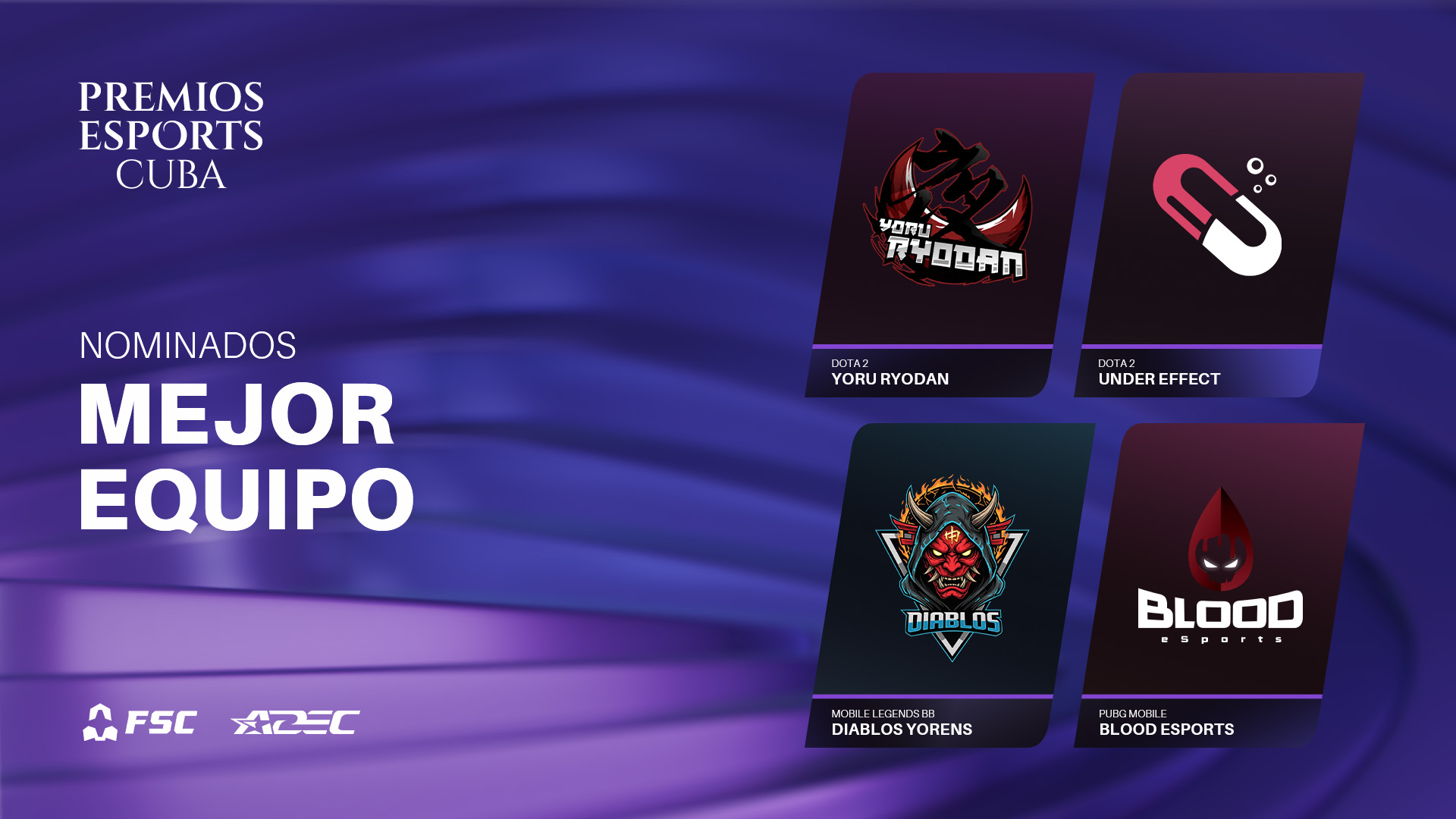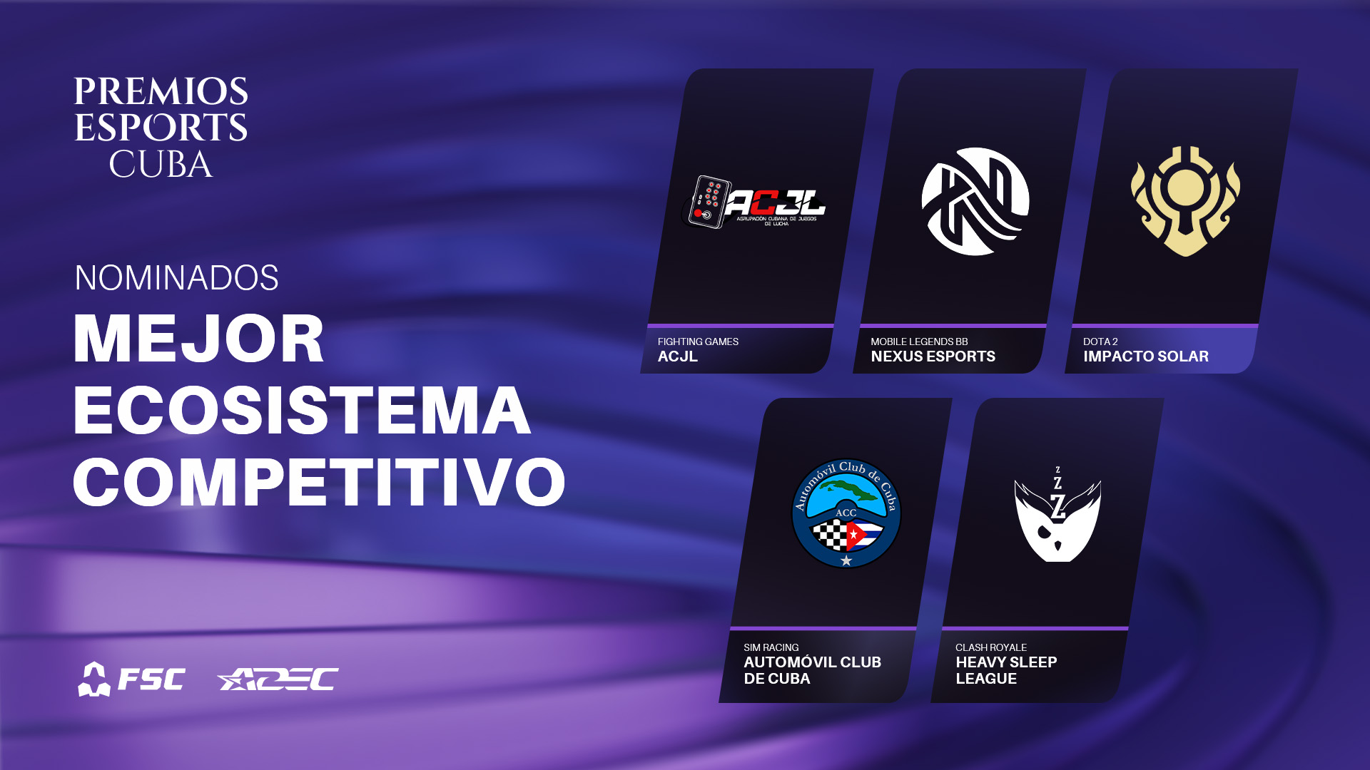 La Agrupación de Deportes Electrónicos de Cuba (ADEC) y Free Skies Championship (FSC) anunciamos los nominados a los Premios Esports Cuba 2025 con el objetivo de reconocer el trabajo de los mejores atletas, equipos y organizaciones de esports que nos acompañaron a lo largo de este año.
